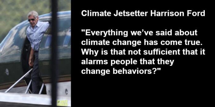 I think I can safely speak for everyone on WUWT, that thanks to Harrison Ford’s climate leadership, we hereby all agree to only fly in private jets when we have to, when we can afford it, when it is convenient, when we feel like it, or when we can’t be bothered to wait in the airport queue.