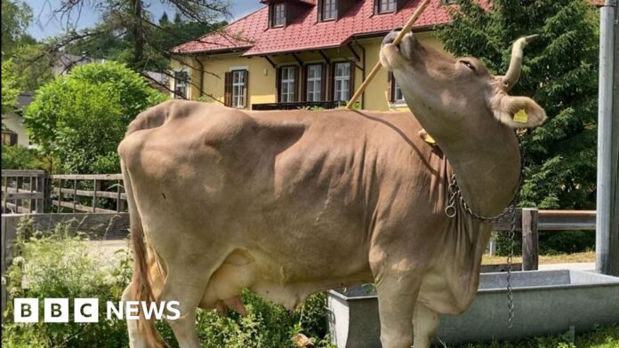 Veronika, a cow living in a mountain village in the Austrian countryside, has spent years perfecting the art of scratching herself using sticks, rakes, and deck brushes.