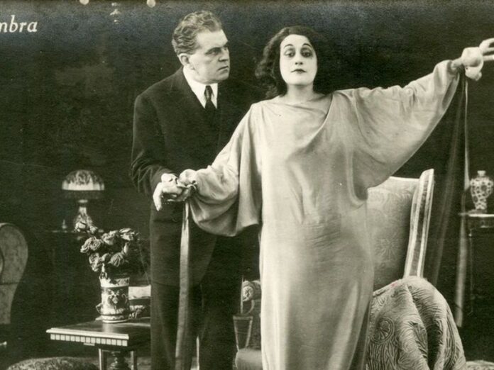 The final film of the daytime screenings was one of my favourites of the whole festival, no less. We are back in the emotionally luxurious world of the diva Italia Almirante Manzini and this, L’Ombra (Mario Almirante, 1923) was acclaimed at the time as one of her greatest films. Oh wow, she can turn what should be a thankless role into a tour de force in sharply paced melodrama of marriage, malaise, mendacity and motherhood. Manzini is Bertha, a beautiful, energetic woman married to a painter named Gerardo (Alberto Collo). When she is struck by a paralysing illness, Gerardo eventually seeks out the company of her comely young relative Elena (Liliana Ardea). This double-life continues, and Elena has a child. But one day, Bertha begins to get her strength back. Manzini is stunning and never passive, despite the dynamic here. She dominates the frame even when consciously dropping out of it, shifting all the mirrors in the house up so she cannot see herself bedridden, or just peeking into it, as when she gains a little strength back and raises one hand into the mirror’s frame. Lovely lighting and great performances all round. Just melodrama magic, especially with the restrained accompaniment of José Maria Serralde Ruiz to guide us gently through the emotional wreckage.