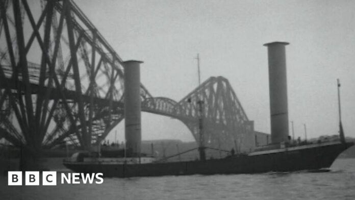 It must have been a bizarre sight when a freight ship, equipped with two large rotating towers, made its way under the Forth Bridge a century ago.